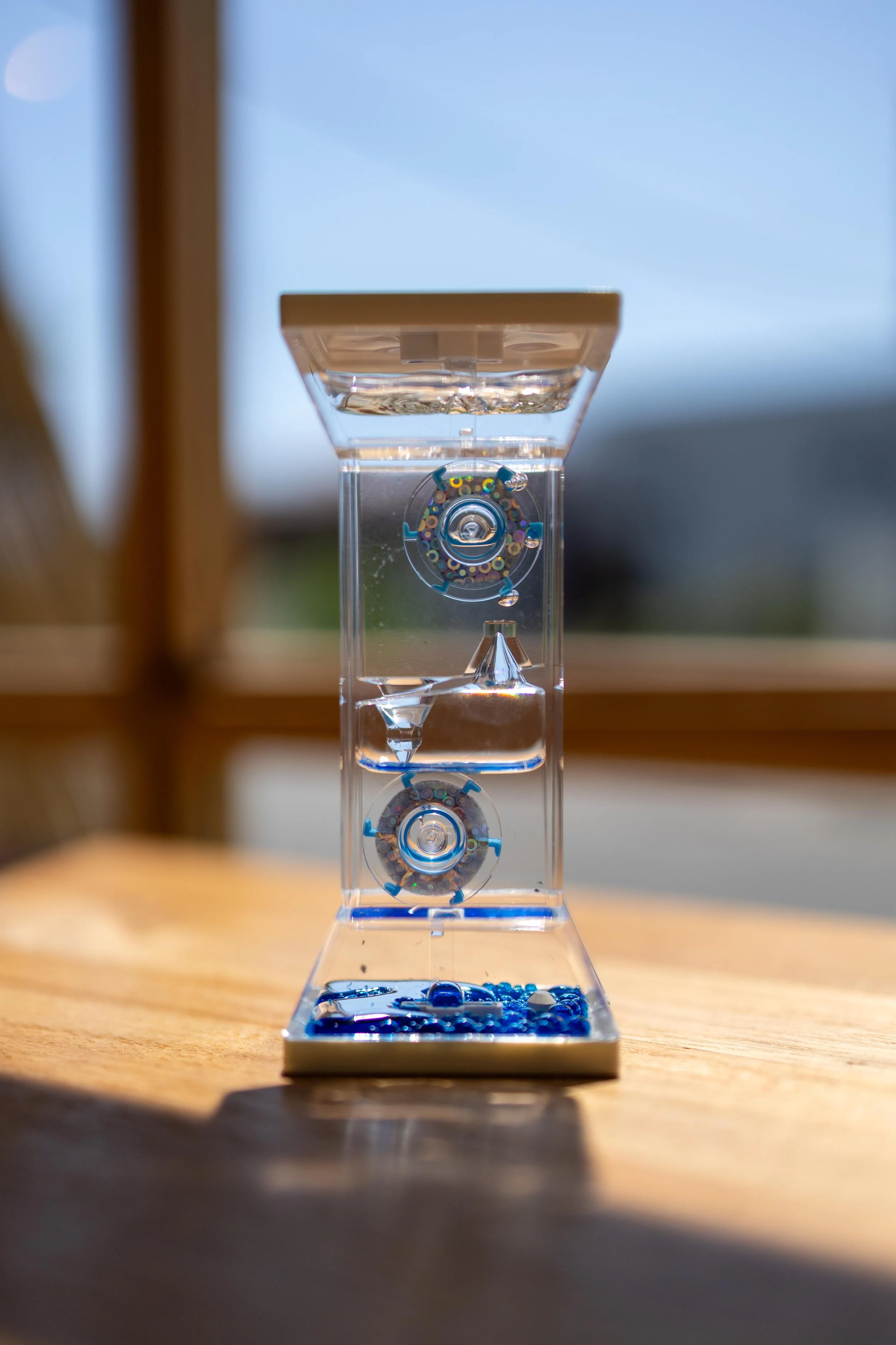 くるくる回る車輪の上を滴っていく、水の中のオイル。