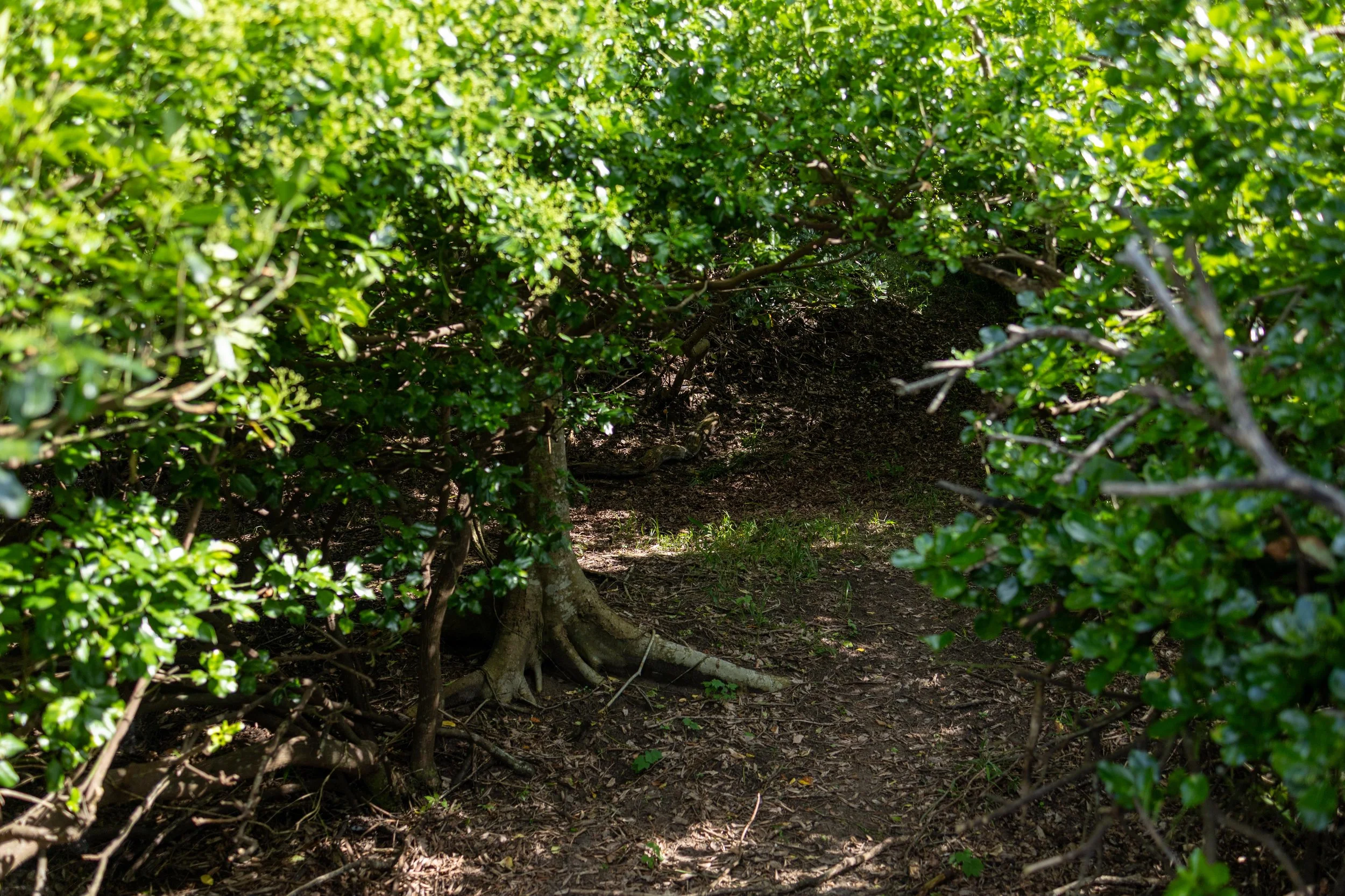 薄暗い木のトンネル。
