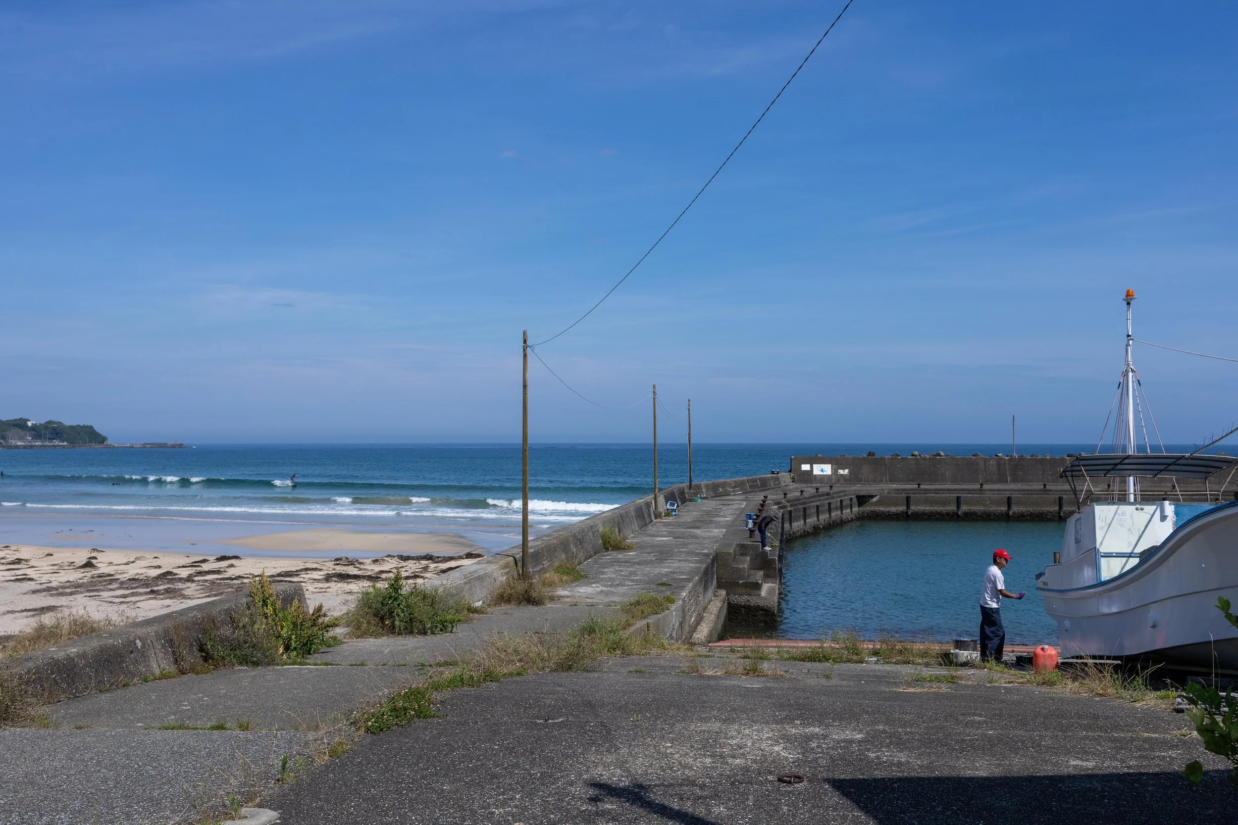 手前にはのどかな漁港。